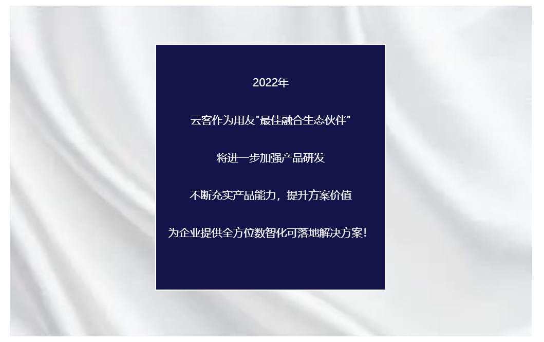 2022年,北京联云天下科技有限公司(简称:云客)与用友深度融合共同打造工作手机移动工作站,致力于为政企用户提供集移动终端、终端管理平台、移动应用、通信号卡为一体的解决方案。