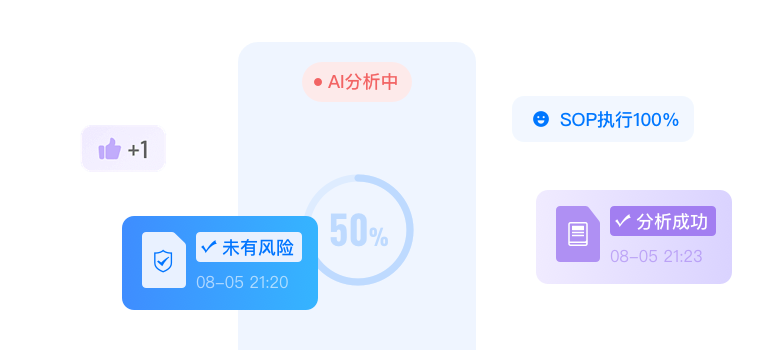 通过话术匹配度、流程节点完成时效等数据,判断员工对标准化服务流程的完成情况,对遗漏环节自动提醒,确保服务专业性。