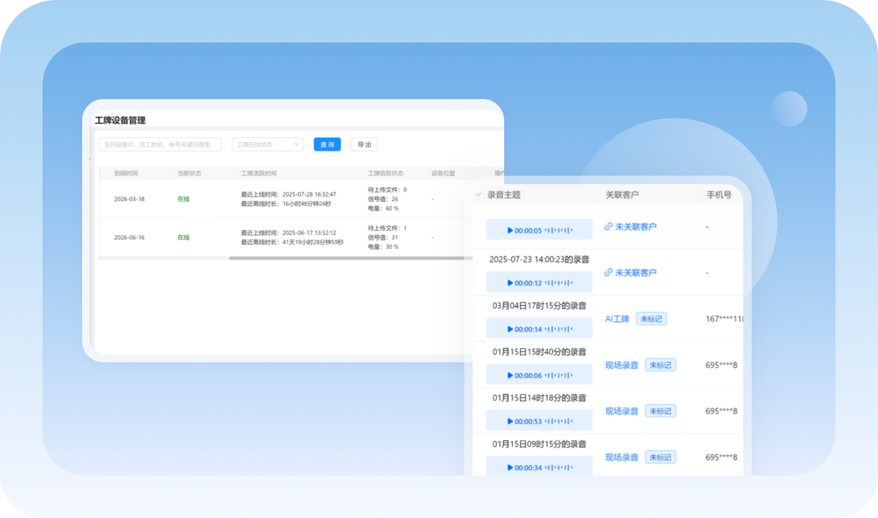 智能工牌可通过工作手机触发录音,确保现场服务体验