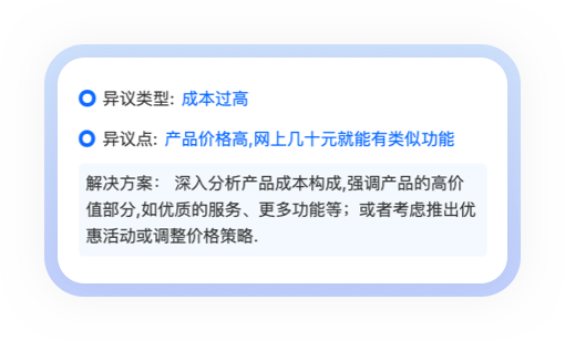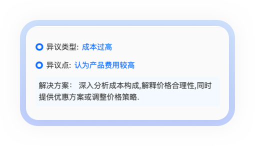 课程顾问佩戴工牌接待客户时,工牌开启录音,完整记录客户咨询的课程类型、预算、学习需求等信息;AI分析沟通内容,提取客户关注点(如 “考证通过率”“上课时间”)、异议(如 “价格过高”“担心效果”),生成客户画像,明确客户需求与顾虑。