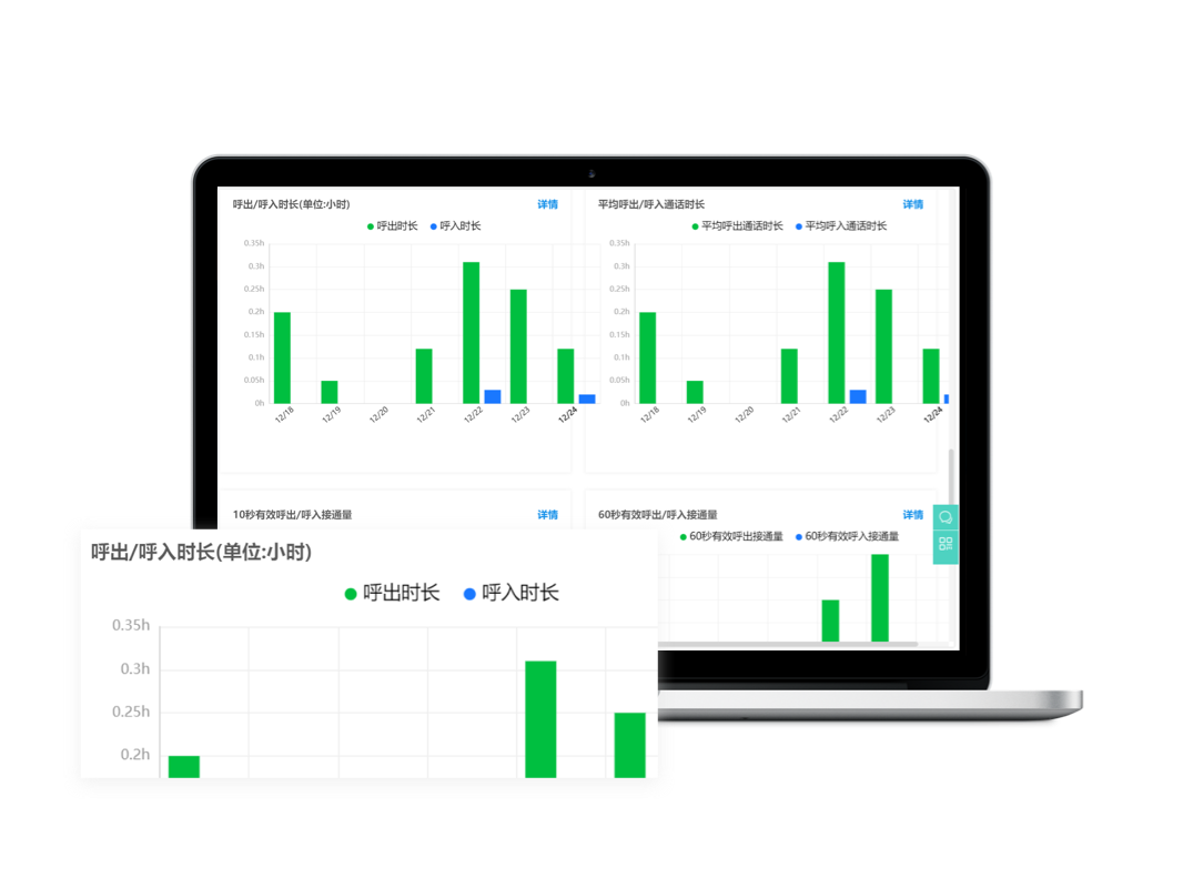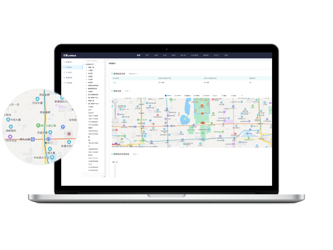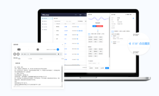 销售的通话量、接通率、通话时长、沟通客户数等过程指标一目了然,销售的工作状态和KPI进行量化。