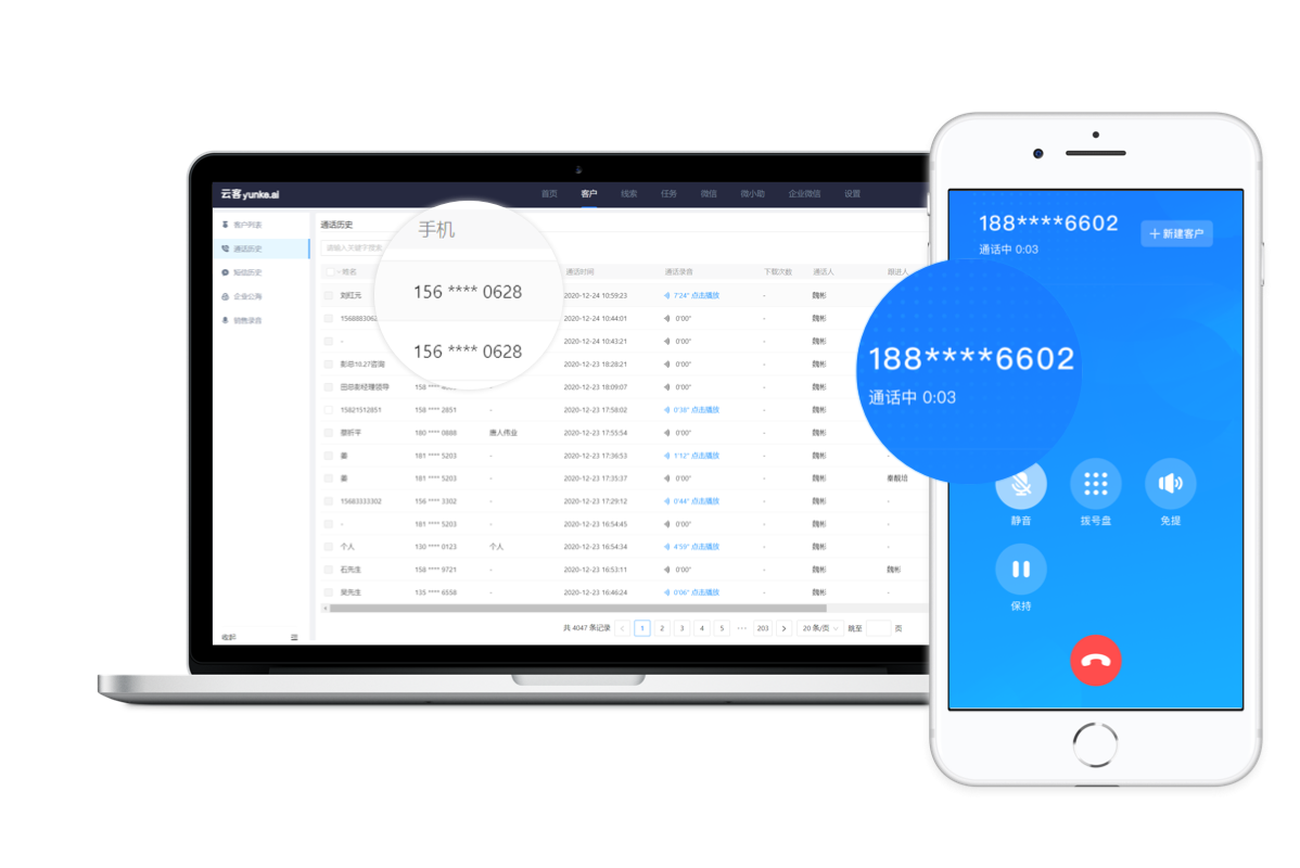 支持开启号码隐藏,开启后客户联系信息全程隐藏,帮助企业更好的保护企业资产,防止私单、飞单、离职带走客户信息等现象。