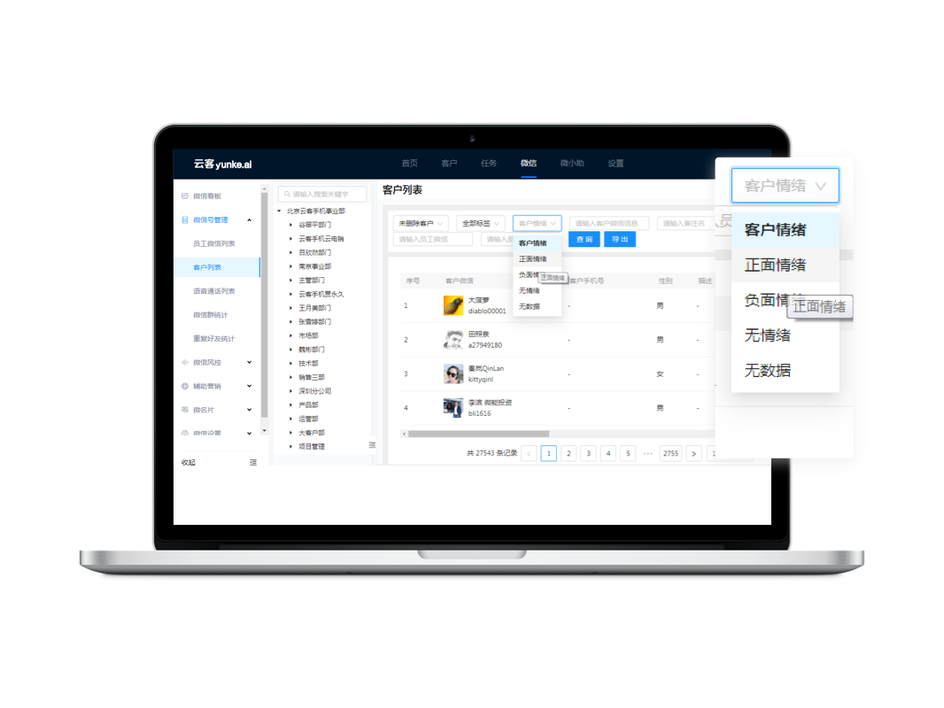 智能分析预测销售沟通状态和客户聊天情绪,从而智能判断签约成功率。