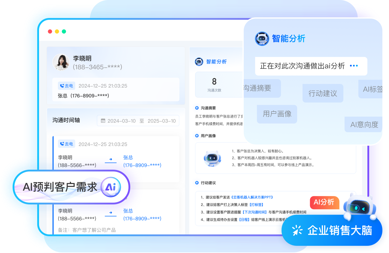 实时分析外呼状态、客户跟进节点及团队执行进度,通过可视