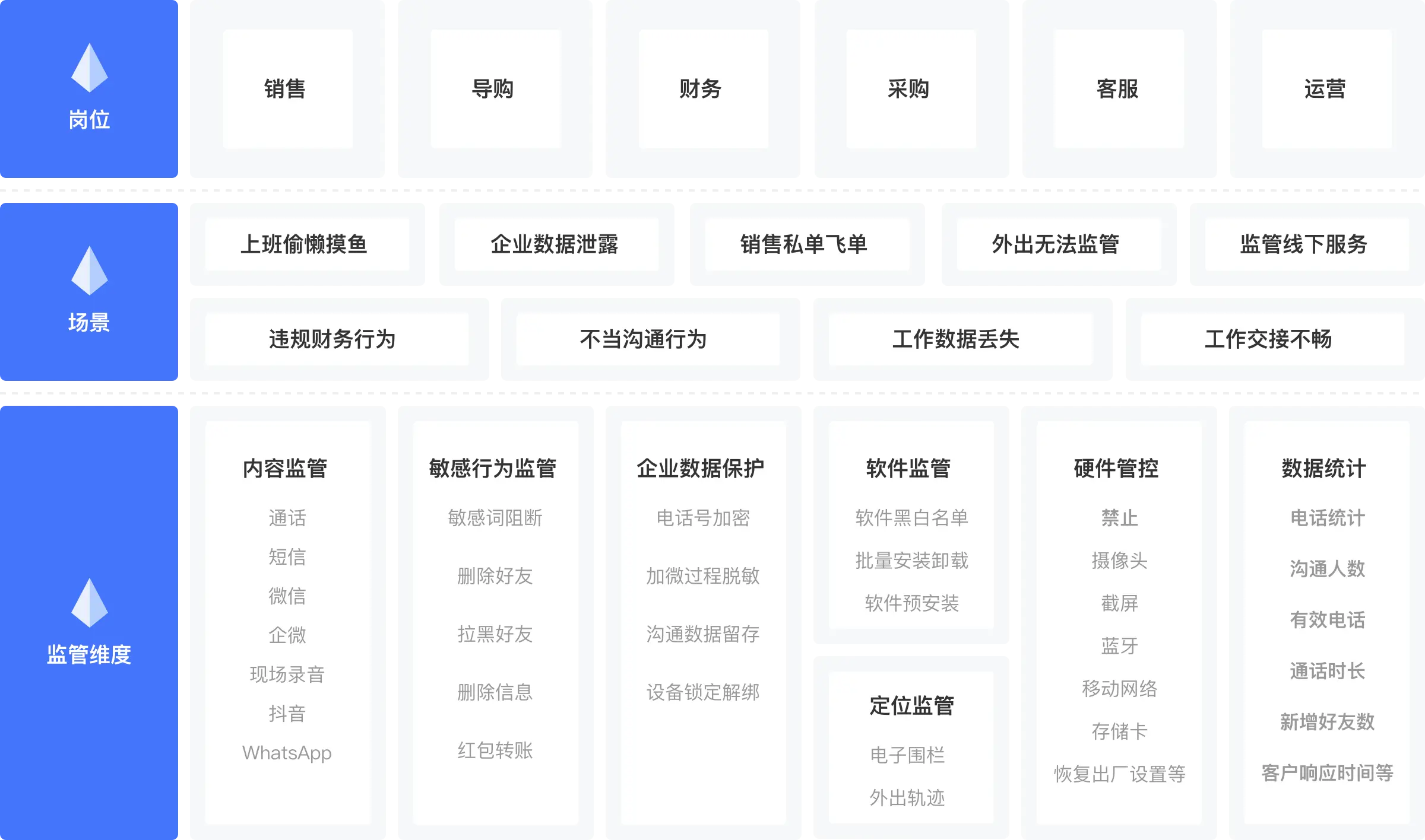 企业级手机软件监控系统,可应用于企业不同场景,对员工手机进行全