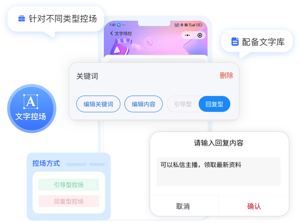 可根据直播间特点,在文字库中编辑存储引导型、回复型