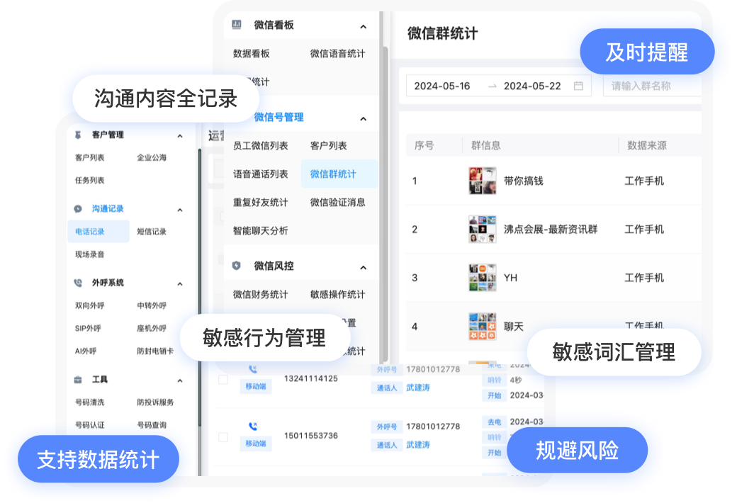 支持微信/企微敏感词汇及敏感行为统计,支持查 看详情
